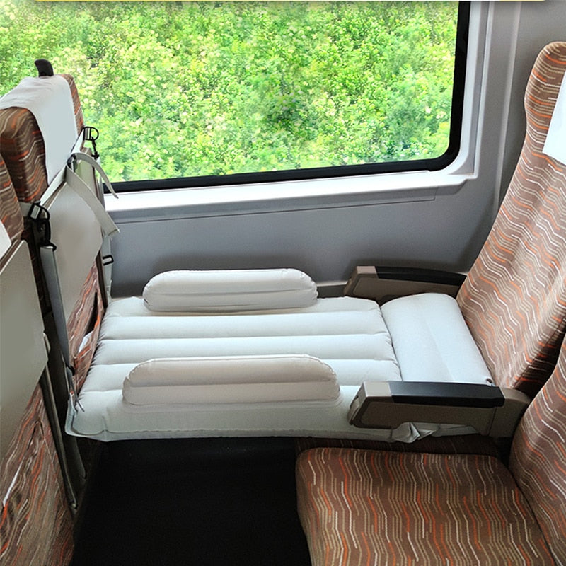 This inflatable Toddler/Kids Air Travel bed will give your toddler his/her own bed in flight.