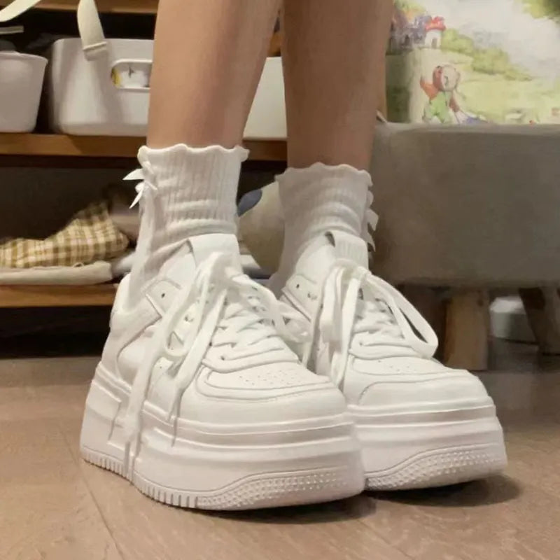 4. Versatile Style: Whether you're dressing up for a casual day out or adding a fashionable edge to your look, these white platform shoes complement a wide range of styles.