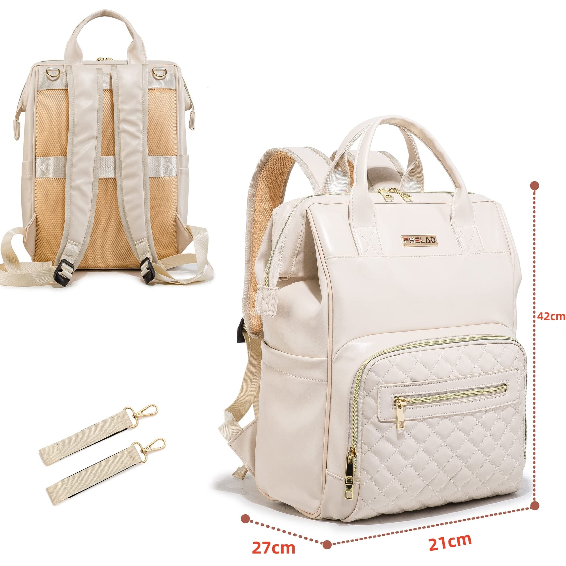 Side of the bag: Elastic pockets on both sides, which is ideal for bottles, sunscreen, wallet, wet wipes, etc.