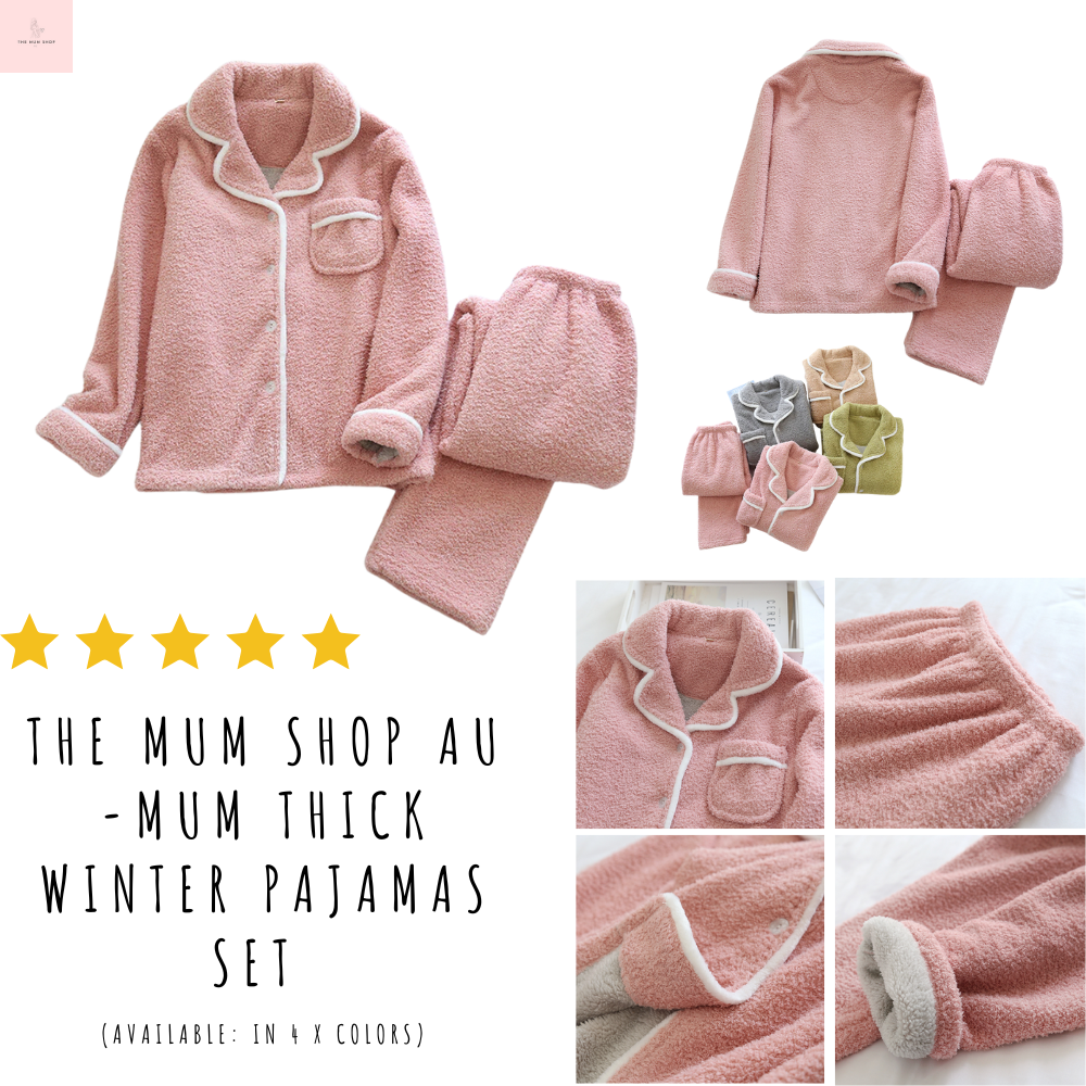 The Mum Shop AU -Mum Thick Winter Pajamas Set (Buttoned Top ,Breastfeeding Friendly)